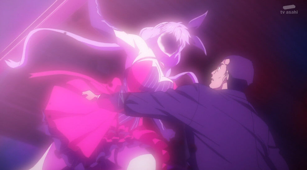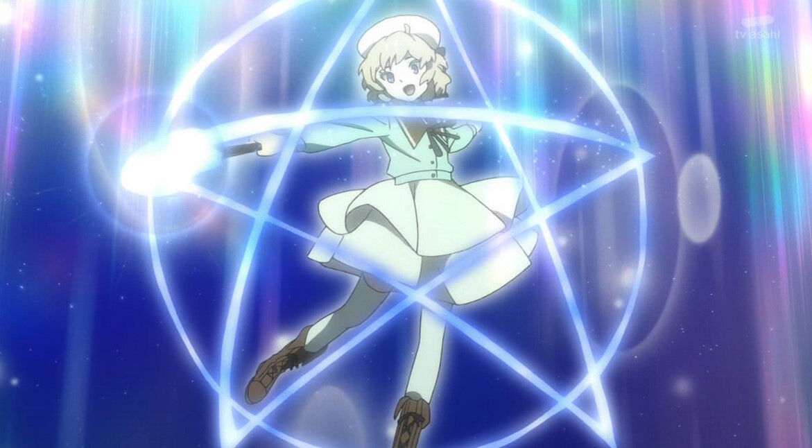「#虚構推理」6話、人々の願望が続くかぎり鋼人七瀬は不死身だ、だから合理的な虚構で上書きするのだ。琴子は魔法陣踊りで事故現場の幽霊を呼び出し(笑)七瀬かりんの死についての証言を得る。琴子だけでは成功は保証できない、それを百パーセントにするのが九郎の未来決定能力だった #kyokou_suiri