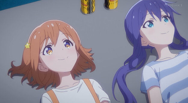 みらあお2人が並んで仰向けの場面