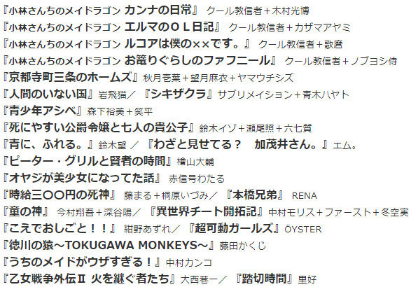月刊やネット連載が多いとは言え週刊も含めて