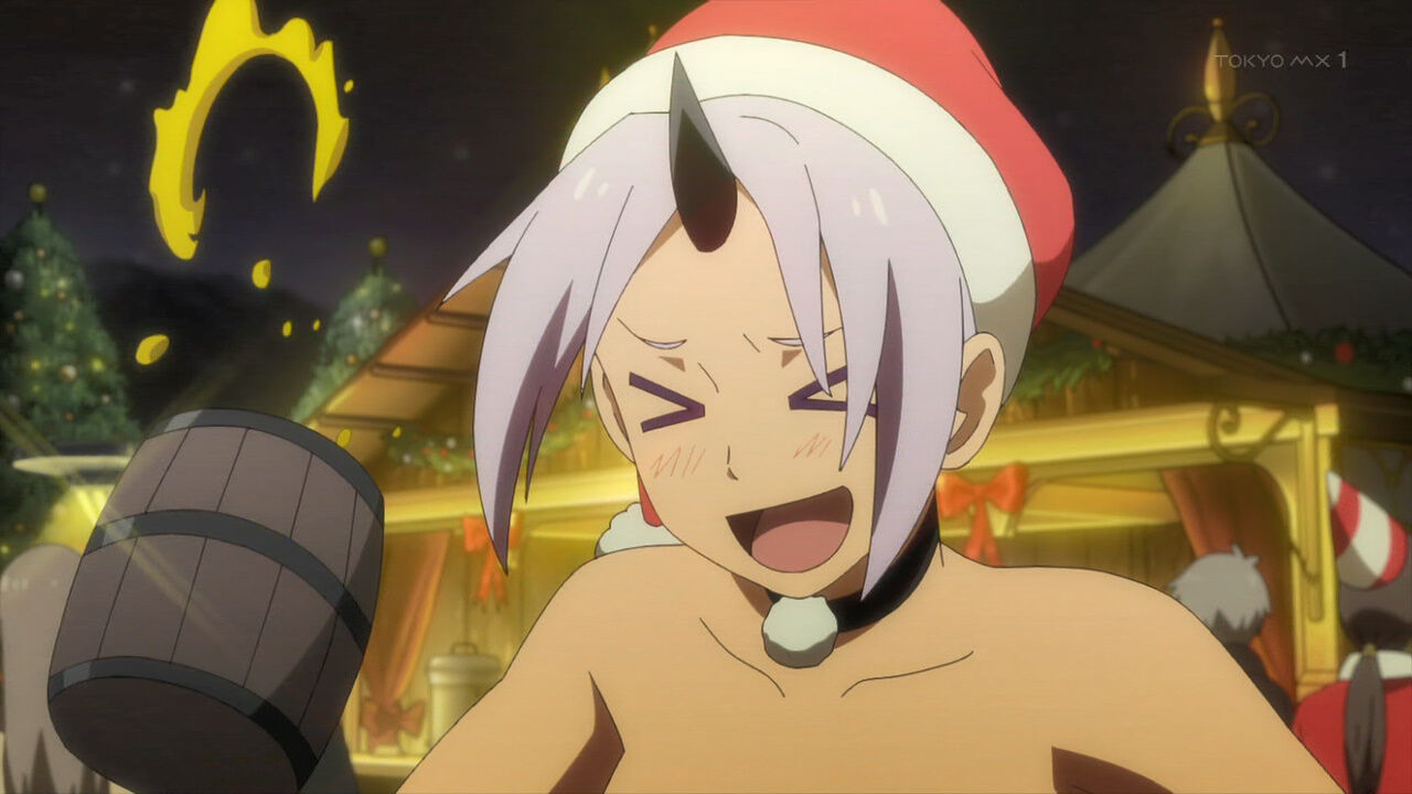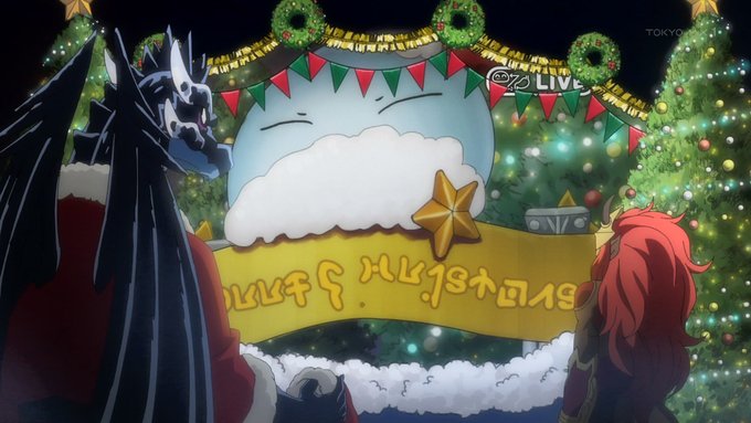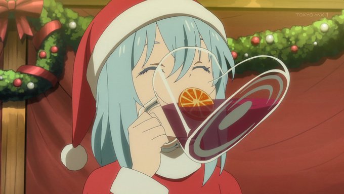 『#転生したらスライムだった件 #転スラ日記』11日記。クリスマスを「宴」という一点のみによる異世界への導入、そのままクリスマスの本邦での受容を思わせなくもない。とりあえず皆サンタ服が似合っていたからヨシ! 今回はクリスマスで酒を呑み、次回は正月で酒を呑むのか #転スラ #tensura #bs11