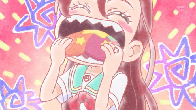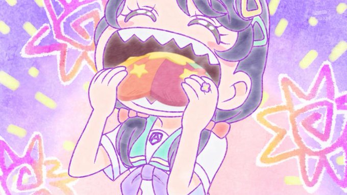 #トロプリ 20話、みのりん先輩がぴかりん探偵になって、貴重なメロンパンを食べた犯人を探す。でも容疑者が全員友達で、ギスギスした雰囲気に。チョンギーレがそうだけど、食べ物の恨みは根深くなるからね。許してあげたまなつの寛大さよ。ショックを受けたローラの表情が何故かツボった。#precure