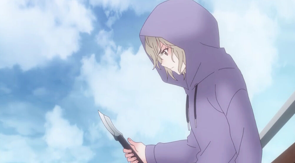 「家」であるキャリーケースを振り回すのは家庭内暴力の暗喩か。いや、陽桜莉が自宅に押しかけてしつこく勧誘する図にも見えるwwキャリーケースを触らせるのは自宅にあげるも同然で、家庭の事情を語り出す仁菜。チョロインの座は仁菜ちゃんのものだww#ブルリフR pic.twitter.com/UyfGOhmYLE
