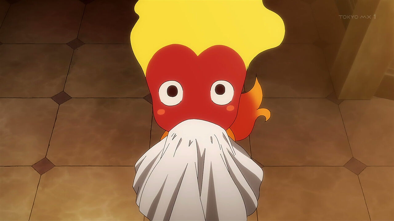 「咲う #アルスノトリア すんっ!」2話、アルスノトリアは蟲の防除係を仰せつかる。メル・小アルベール・ピカトリクス・アブラメリンも手伝う/影猫ペルデラが蟲が現れたという。一気に緊迫するが、捕えてみれば熱の精霊だった。大立ち回りの後始末が一番大変だった #アルスノ #すんすん #arsnotoria