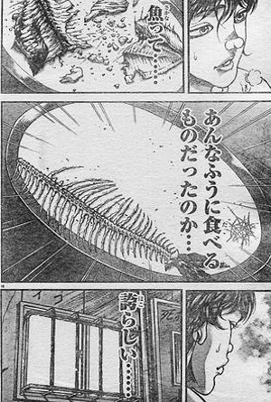 魚の食い方知らん不作法息子の前で骨だけ残して